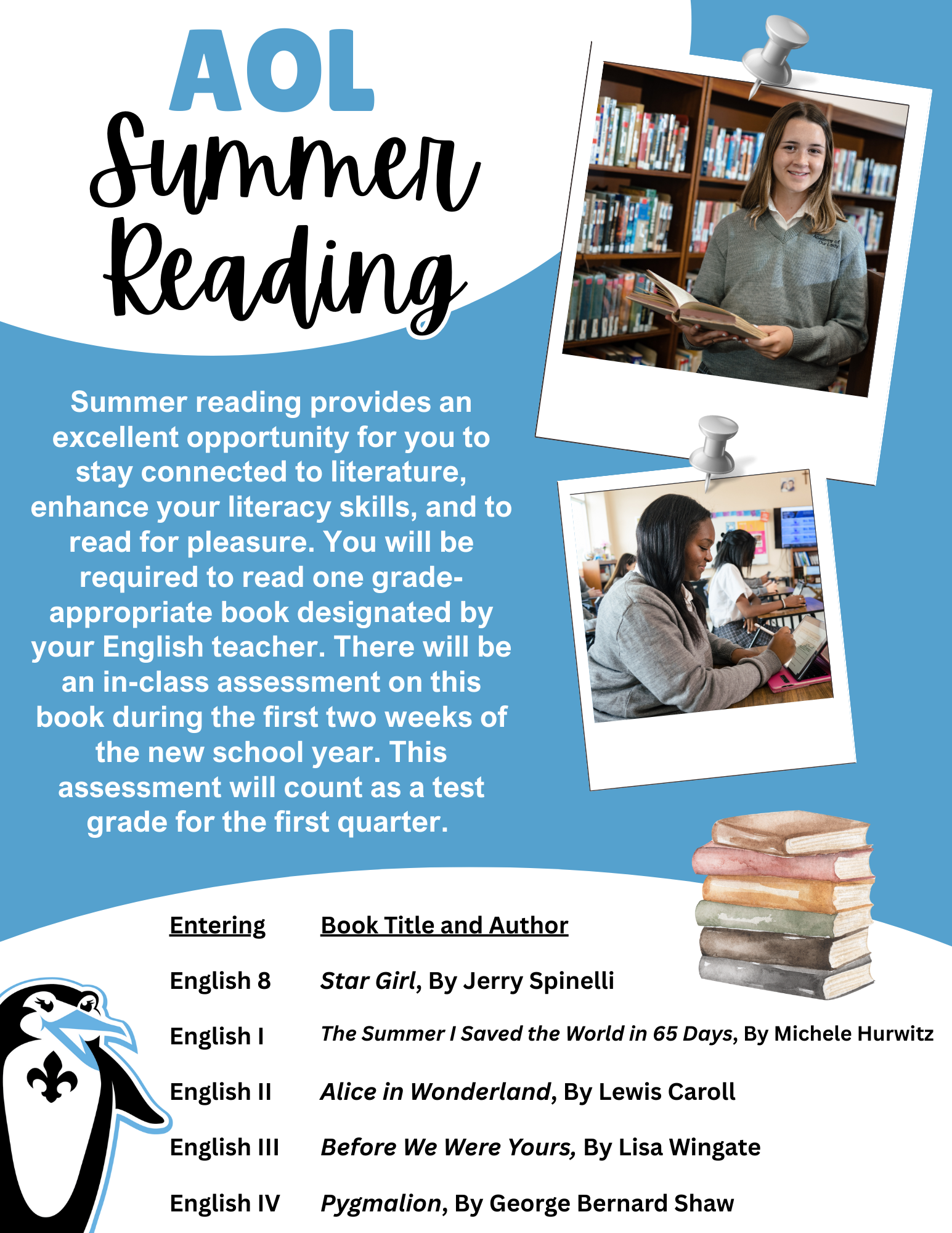 The Language Department focuses on the study of language, composition, and literature as a means to develop in the students the ability to think independently, write fluently, speak confidently, view discerningly, and problem-solve effectively. This gives the students the skills they need to become life-long learners and to secure their success as responsible citizens in society.